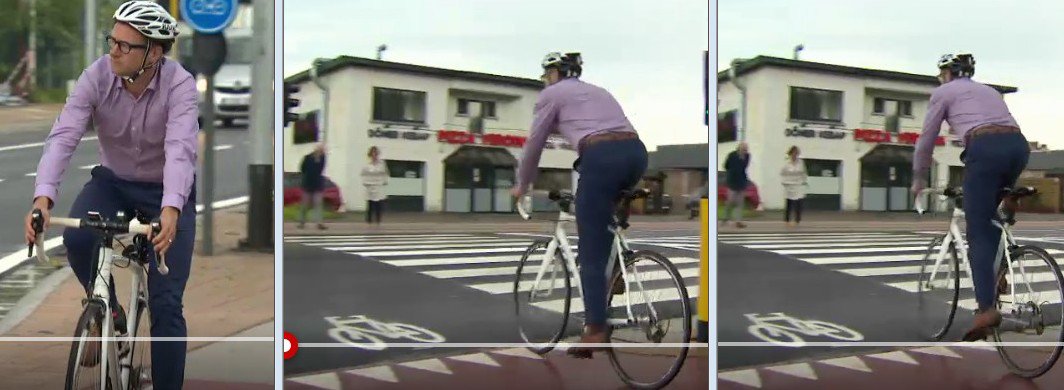 Omdat hij een cruciaal element vergeet bij de wegmarkering die een fietspad aanduidt: